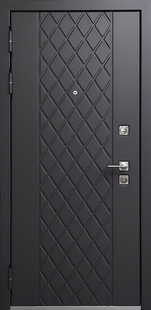 Входная дверь с фрезерованными панелями МДФ темно-серого цвета КД-1377