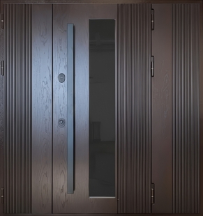 Входная полуторная термодверь с боковой вставкой, остеклением, бугельной ручкой и отделкой МДФ КД-1384