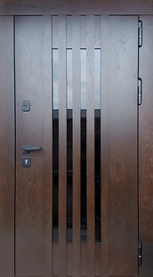 Входная термодверь с рейками, стеклом и отделкой МДФ со шпоном — это сочетание надёжности, эстетики и практичности. МДФ-панели позволяют реализовать индивидуальные дизайнерские решения при сохранении технических характеристик двери. Служат выразительным элементом композиции входа. Оформление подойдет как для частного дома, так и для загородного коттеджа.