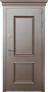 Входная уличная термодверь с карнизом, металлобагетом и коричневым полимерным окрашиванием — это гармоничное сочетание классического дизайна и современных технологий. Панели из МДФ обеспечивают не только эстетическую привлекательность, но и дополнительную защиту конструкции. Гармонируют с цветовой палитрой фасада и внутренней отделки. Отделка подойдет владельцам домов с деревянным фасадом.