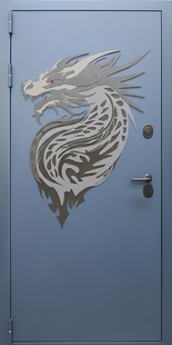 Входная дверь с лазерной резкой «дракон» и порошковым напылением муар КД-1414