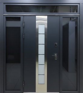 Входная остекленная группа с терморазрывом и порошковым черным окрашиванием объединяет в себе технологичность, стиль и практичность. Благодаря продуманной конструкции дверь не требует сложного ухода и сохраняет презентабельный вид.